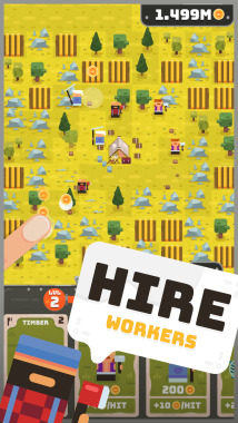 Lumberjacks, stonemasons, fishermen, miners and knights. Hire hundreds of workers, merge them and invent new crafts. Make as huge crowd of people as you can. Your village will grow and develop, you’ll become a king of huge, totally overcrowded empire!